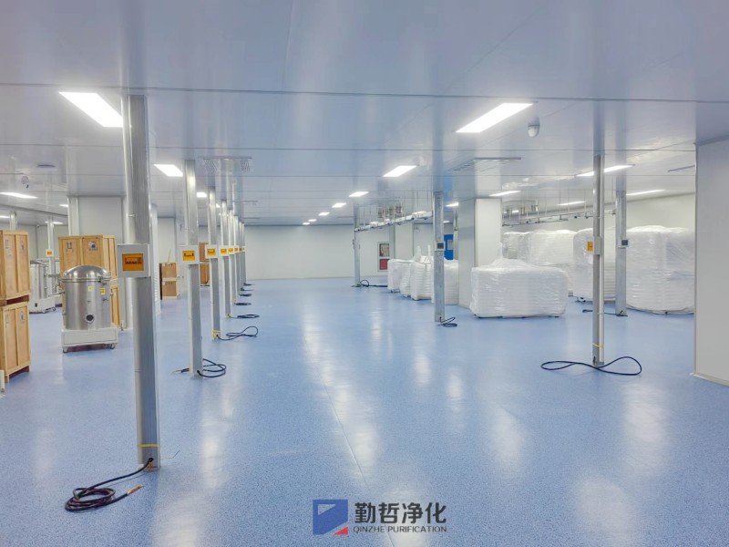 車間的圍護(hù)結(jié)構(gòu)建設(shè)標(biāo)準(zhǔn)同樣不容忽視。勤哲凈化在十萬(wàn)級(jí)無(wú)塵車間的圍護(hù)結(jié)構(gòu)設(shè)計(jì)與施工中,注重選用具有良好氣密性、隔熱性和耐腐蝕性的材料。墻面通常采用彩鋼板或不銹鋼板,這些材料表面光滑平整,不易積塵,且便于清潔與消毒。彩鋼板的夾芯材料具備良好的隔熱性能,有助于維持車間內(nèi)的溫度穩(wěn)定,減少外界環(huán)境溫度變化對(duì)車間內(nèi)部的影響。天花板采用吊頂式安裝,多選用鋁扣板或凈化板,其材質(zhì)輕盈且具有較高的強(qiáng)度,能夠承受一定的重量,同時(shí)也具備良好的氣密性和防塵性能。地面則采用環(huán)氧自流平地坪或防靜電地板,環(huán)氧自流平地坪具有無(wú)縫隙、平整光滑、耐磨、耐腐蝕、易清潔等特點(diǎn),能夠有效防止灰塵在地面縫隙中積聚;防靜電地板則適用于對(duì)靜電較為敏感的生產(chǎn)環(huán)境,它可以將車間內(nèi)產(chǎn)生的靜電及時(shí)導(dǎo)走,避免靜電對(duì)電子元器件等產(chǎn)品造成損害。在圍護(hù)結(jié)構(gòu)的安裝過程中,勤哲凈化嚴(yán)格把控施工質(zhì)量,確保各個(gè)板塊之間的拼接緊密無(wú)縫,門窗等開口部位采用密封膠條進(jìn)行密封處理,使整個(gè)圍護(hù)結(jié)構(gòu)的氣密性達(dá)到最佳狀態(tài),防止外界未經(jīng)過濾的空氣滲入車間內(nèi)部。